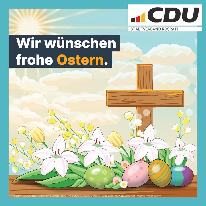 🐣🌷 Frohe Ostern, Rösrath!Wir wünschen euch und euren Familien entspannte Feiertage und natürlich eine erfolgreiche Eiersuche. 🥚😉Ostern ist auch eine Zeit, um kurz innezuhalten, für Gemeinschaft, Zusammenhalt und die kleinen Dinge im Alltag.Dafür arbeiten wir auch hier vor Ort: damit Rösrath lebenswert bleibt, heute und in Zukunft. 💪🏻#Rösrath #Ostern #FroheOstern #GemeinsamFürRösrath #Heimat